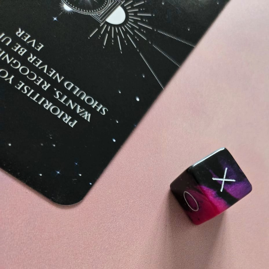 Flip the card and go with the side that resonates or roll the included dice and let the universe decide.