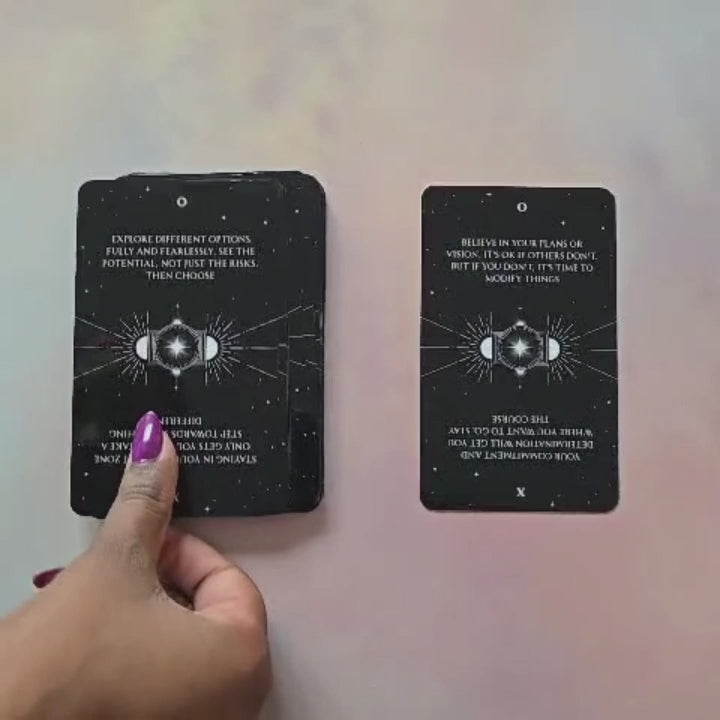 Each card in this deck carries two different messages — one marked with an X, the other with an O. Whether you see them as options or perspectives, the right one will speak to you.